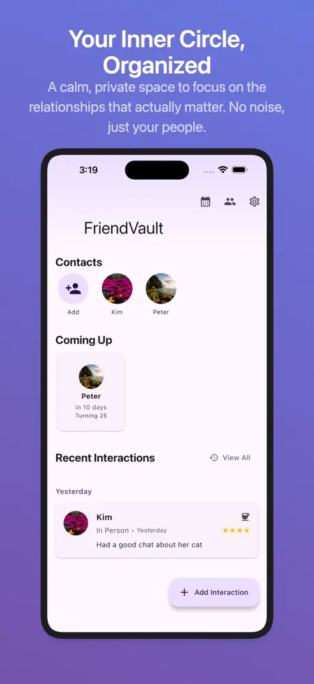 We all want to be better friends, but life gets busy. We forget birthdays, we forget that book recommendation, or we forget when we last caught up. FriendVault solves this without invading your privacy.